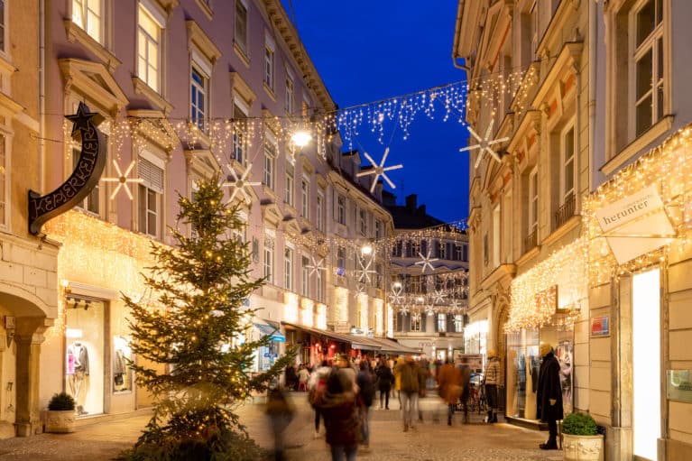 Der Altgrazer Christkindlmarkt im Franziskanerviertel ist der älteste der Stadt und widmet sich ländlichen Traditionen von Thüringer Christbaumschmuck bis zu Blechspielzeug.