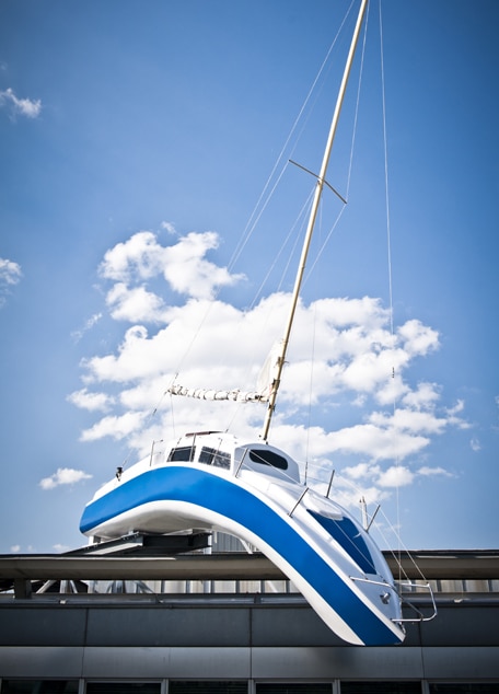Wie kein anderer stellt der berühmte österreichische Gegenwartskünstler Erwin Wurm alltägliche Sehgewohnheiten in Frage. Davon zeugt auch das 2012 am Dach des Daniel Vienna gestrandete und über der Dachkante gekrümmte Segelboot „Misconceivable“. Was passt besser zu einem Hotel, das offen und „anders“ sein sowie „über den Tellerrand“ hinaussehen will. Weithin sichtbar deutet das Boot am Dach auf einen Ort lebendiger Urbanität hin: auf das Hotel Daniel Vienna und seine Daniel Bakery im dritten Wiener Bezirk.