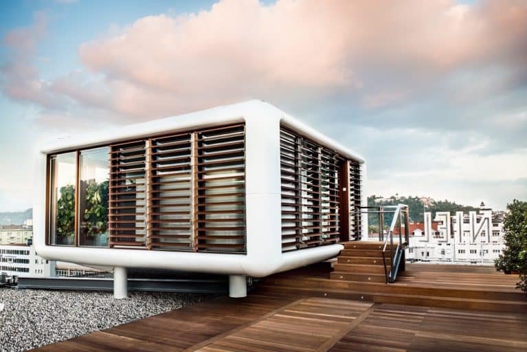 Der im Herbst 2014 installierte, vom Künstler Werner Aisslinger designte LoftCube toppt als Hotelsuite de luxe das Dach des Hotel Daniel Graz: 44 top ausgestattete Quadratmeter mit 360-Grad-Ausblick auf ganz Graz, Dschungel-Feeling in der riesigen Rainshower-Dusche, ein eigens angefertigtes XXL-Bett – unsere Gäste erwarten unvergessliche Erlebnisse. Übrigens, das Daniel Graz war nicht nur das weltweit erste Hotel mit einem LoftCube am Dach, es handelte sich auch um die allererste „fixe“ Dachinstallation eines original LoftCube überhaupt.
